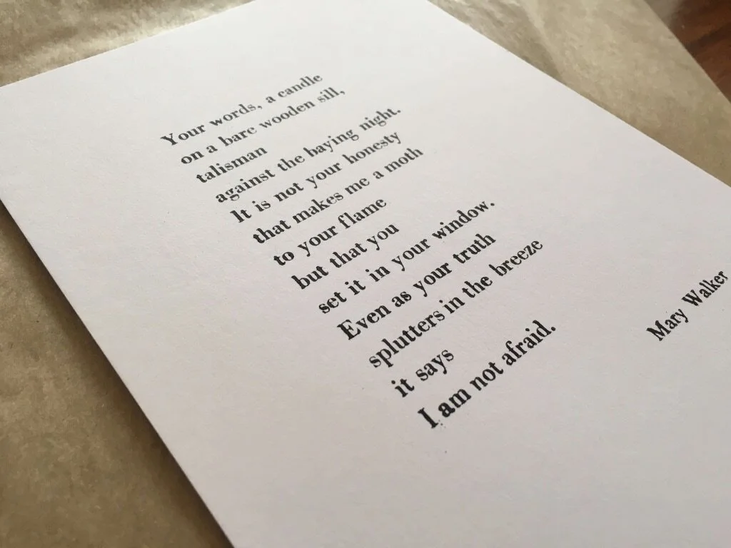 I offer this letterpress poem in that spirit. I invite you to not hide your light under a bushel, but rather set it in your window for all to see.